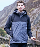 Recycled polyester outer. Recycled polyester lux lining. Recycled polyester hollowfibre padding. AquaDry membrane with H2OShield DWR finish. Waterproof 10000mm with taped seams. Breathable 10000g. Grown on adjustable hood. Full length waterproof zip with chin guard and inner zip guard. Inner map and media pockets. Two front zip pockets. Tear release adjustable cuffs. Drawcord hem. Branding on back of hood, zip pulls and on right side seam. Access for decoration.