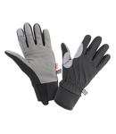 100% polyester. Polyurethane palm patches for added grip. Polyester inner padding. Tear and release wrist strap.