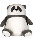 100% polyester. Soft plush grey/white panda. Sewn eyes. Contrast nose. Removable inner pad. Zip access for decoration onto front panel. Suitable for embroidery, vinyl print and sublimation.