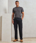 Durable work cargo trousers with Premier's Stretchchecker fabric for stretch and a comfortable fit. Belt loops and two-button fastening to the waistband. Covered YKK zip fly. Side sling pockets. Multiple mobile friendly, cargo-style pockets with hook and loop fastening. Single patch pocket to the reverse. Two leg lengths. Unisex styling. Contains certified recycled polyester.